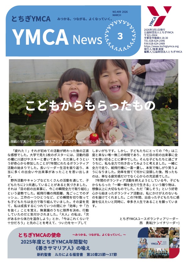 とちぎYMCAでは「YMCA News」を刊行し、皆さまに情報を発信しています。