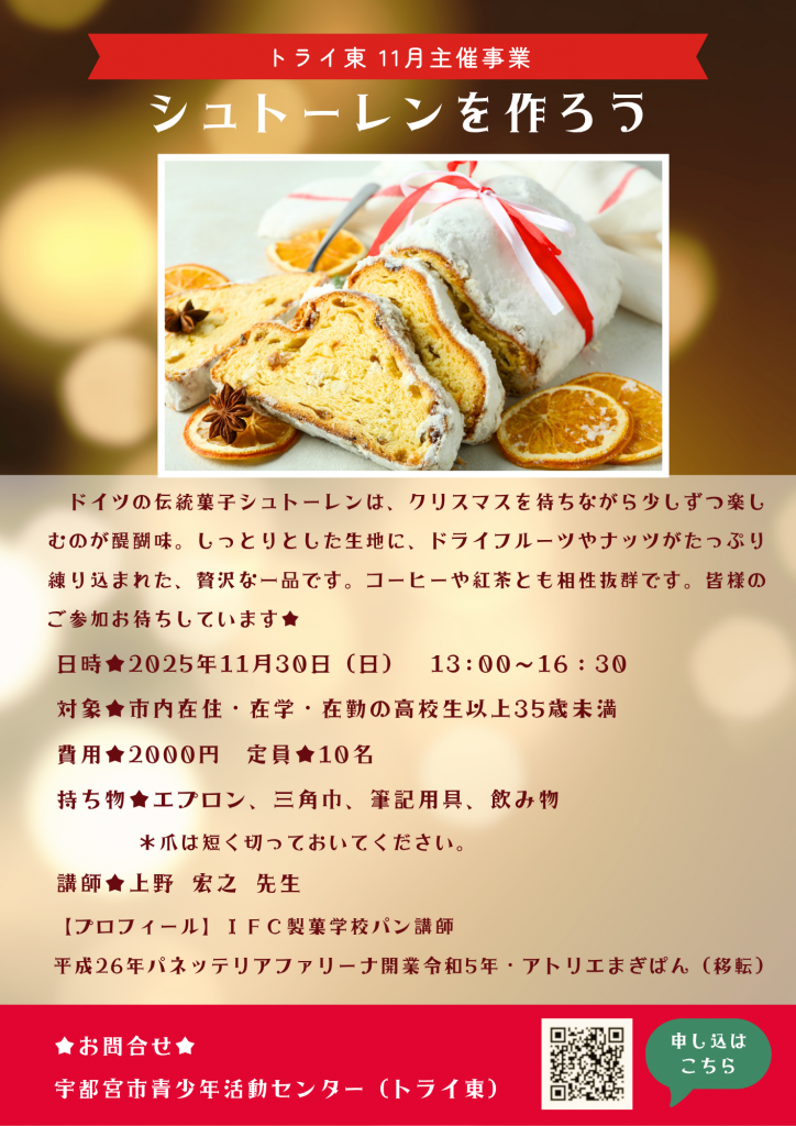 <場 所> 宇都宮市青少年活動センタートライ東(料理室)