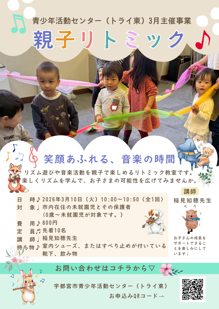 リズム遊びや音楽活動を親子で楽しめるリトミック教室です。楽しくリズムを学んで、お子さまの可能性を広げてみませんか♪